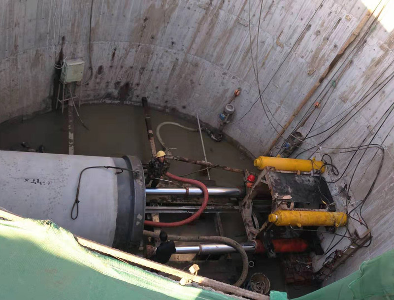 缸及管道間、中繼間等推力,把工具管或掘進機從工作坑內穿過土層一直推進到接收坑內,然后吊起。管道緊隨工具管或掘進