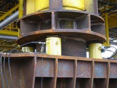 天津橋梁架設工程中的同步頂升千斤頂